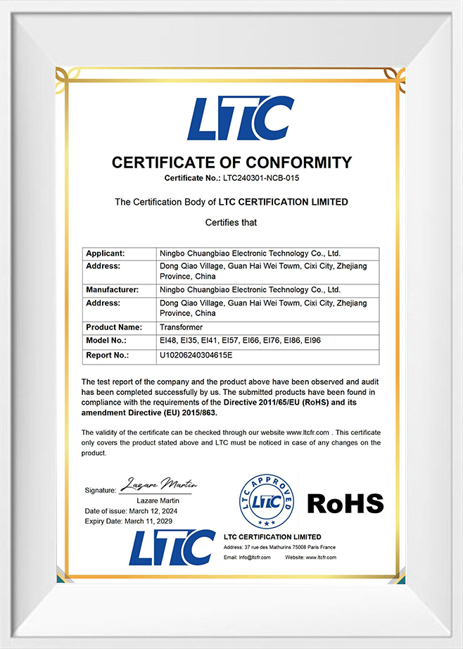 Ningbo Chuangbiao Electronic Technology Co., Ltd., de la înființarea sa în 2010, S-A Angajat SĂERE OFERE SOLUțII DE Transformare Electronice eficile și fiabile Pentru echipamente Electronice și aplicații de Alimentarare CU putre Redusiz. CA Profesionist Transformator Electronic Producator, Compania A Dezvoltat Cu Succes O Serie de Produse Transformatoare Electronice Adecvate Pentru Aparatele de AcasĂ, ECHIPAME DE COMUNICARE, ILUMINAT CU LED, Electronice Electrice și Alte Câmpuri, CU Capacitețile Vânzare Excelente de Proiectarare și Selecția de Materite de Eclente de Proiectarare și Selecția de Materite de Materie calitate.
